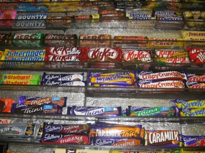 Preparation: Set the candy bars in the center of the room - grouping all of the bars of the same type together into the same pile. You should have a pile of bars for each type of candy you've purchased.