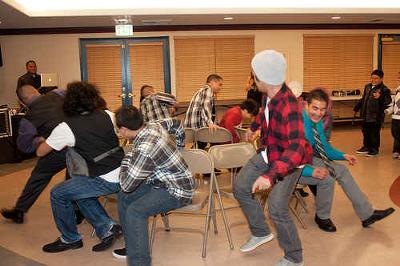 We all sat in a circle facing each other and start the game off with one person standing in the middle of us. That person standing does not have a seat to sit in or a spot on the floor where the rest of the people could be seated.