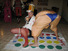 If you're playing strip Twister as a couple, the "looser" can have body parts assigned to each color... then some sensual touching will begin.
