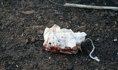 So my partner and I get out of the car and I pull out a tampon from my purse. My partner pulls out the ketchup we got earlier and starts squirting it on the pad.