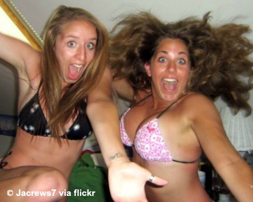 Reverse-strip dares! If your girls don't want to strip down completely --- Have them wear a white shirt and have fun doing a wet T-shirt contest! |