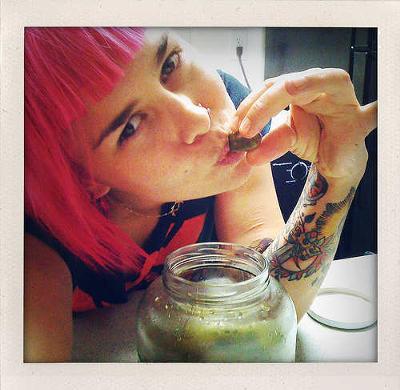 red high heels, and put make up all over my face, and then walk next door and tell them that I was addicted to pickles and I needed one really bad! I looked ridiculous.